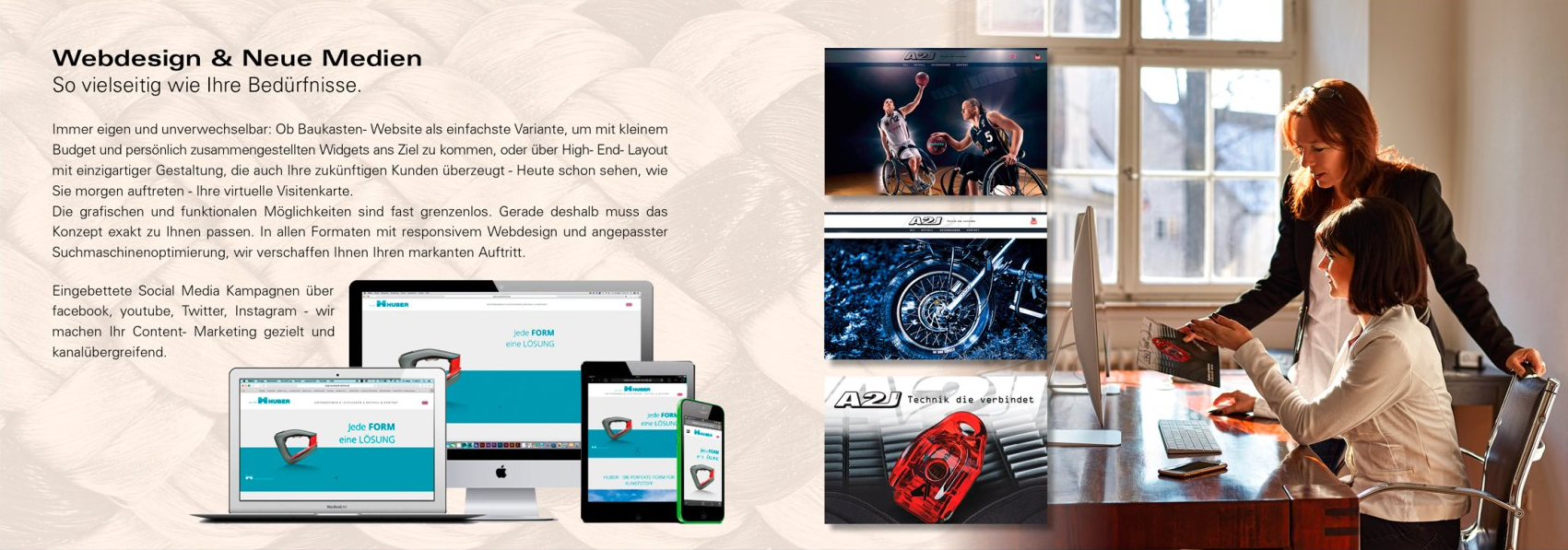 Immer verlässlich, immer realistisch, immer punktgenau. Auch wenn bei Ihnen Land unter herrscht, sind wir Ihr zuverlässiger Partner und Macher für Ihre Marketing-, Kommunikations- und Werbemaßnahmen: unkompliziert und verlässlich.