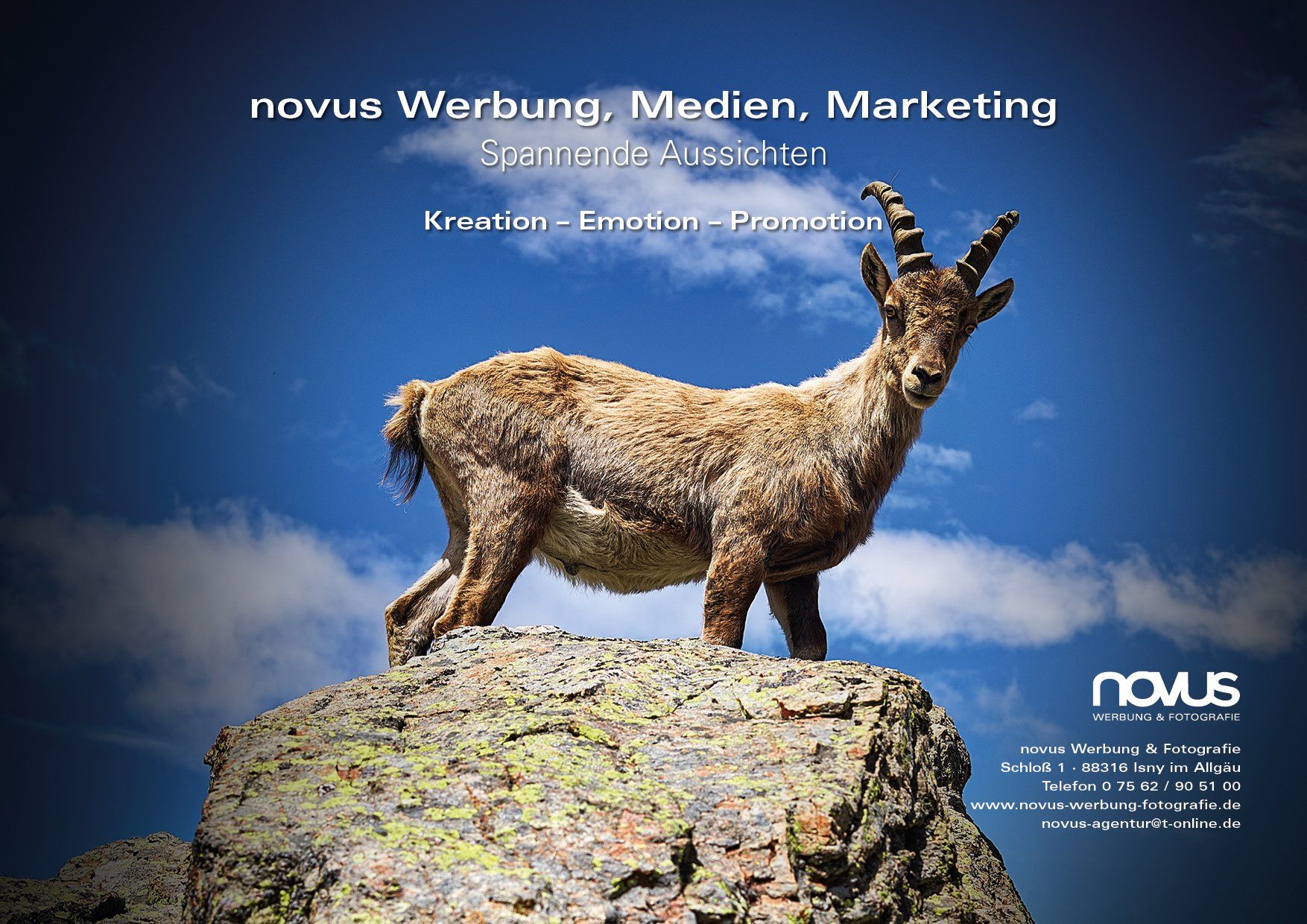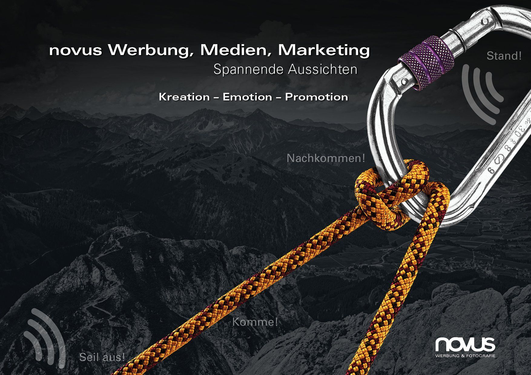 Wenn Sie den bunten Esprit frischer Ideen, gepaart mit der Erfahrung aus dem Bewährten suchen, dann finden Sie bei novus alle Voraussetzungen für Ihr Branding, für Ihr Corporate Design und für Ihre Print- und Online-Medienkampagnen. Unsere Begeisterung liegt in der punktgenauen Ideenentwicklung und Realisation Ihrer Kampagnen oder Einzelmaßnamen wie Flyer, Prospekte, Kataloge, Banner, Visualisierungen, Life- Events, Foto- und Film-Inszenierungen und vielem mehr.